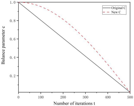 where denotes the maximum number of iterations, represents the current number of iterations, and represents the maximum and minimum values of the balance parameters.