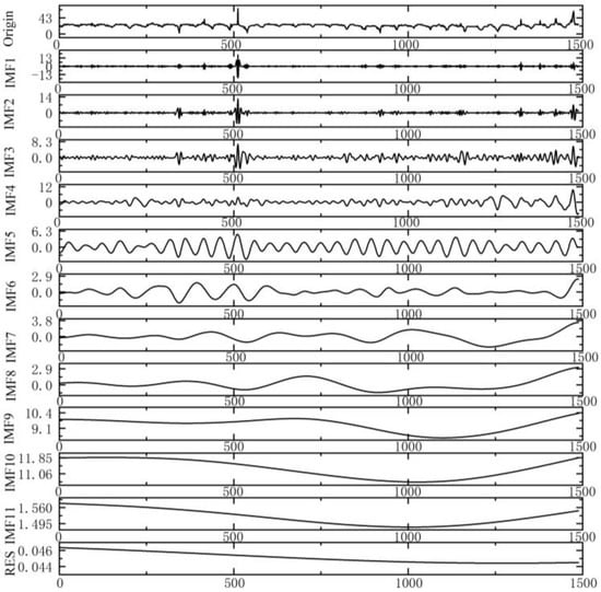 - Step 2: The new sequence is decomposed into several intrinsic mode function (IMF) components and one residual (Res) component.