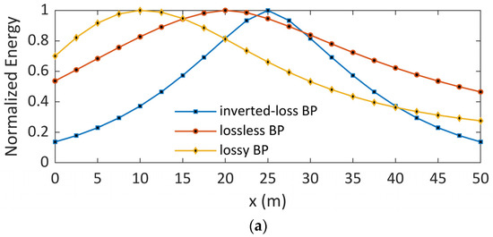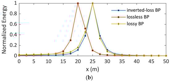 As detailed in [21], the telegrapher’s equations are not rigorously time reversal invariant if the line is immersed in a dissipative medium. In the case of a bare wire buried in the ground, the losses are closely related to the soil conductivity, being more significant the higher the conductivity. In an attempt to deal with the issue of losses in the proposed EMTR procedure to locate series faults in grounding electrodes, three back-propagation (BP) models are considered [21]: inverted-loss, lossless and lossy.