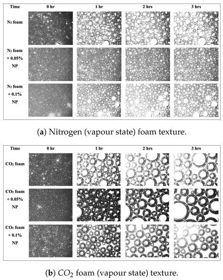 - Bello, A.; Ivanova, A.; Cheremisin, A. Enhancing N2 and CO2 foam stability by surfactants and nanoparticles at high temperature and various salinities. J. Pet. Sci. Eng. 2022, 215, 110720. [Google Scholar] [CrossRef]