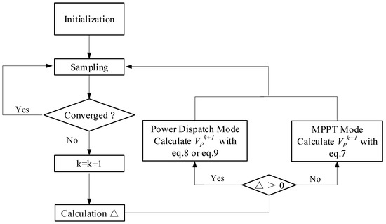 P-U curve and by continuously iterating to make it locally converged to the target operating point, either the MPP or the power dispatch point. Once at least four sampling points are ready, the following equations are derived from Equation (2):