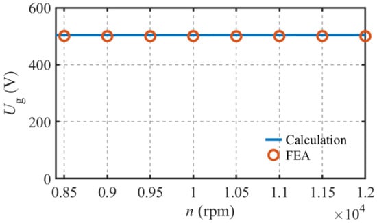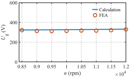 The voltage of the generator winding Ug in no-load conditions obtained from the circuit simulation is compared with that obtained from the FEA is shown in Figure 24. The control effect of the FC has been verified, and the two results are almost equal.