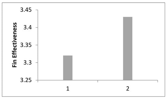 Fin effectiveness was calculated from Equation (14) taken from [29],