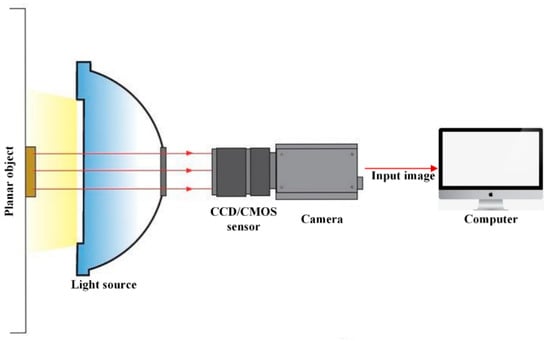 Chen et al. [27] used micro-scratch and two-dimensional digital image correlation DIC (Digital image correlation) coupling technology to study the role of binders in the mechanical integrity of lithium-ion battery electrodes and established a composite material by creating a micro-scratch model and decoupling the composite material model. This method can provide new guidance for binder selection and electrode design and help to lay the foundations for modeling the mechanical and thermal properties of lithium-ion battery porous electrodes. Qi et al. [28] also used 2D digital image correlation analysis to provide the corresponding deformation and strain fields, showing expansion and contraction. By combining experimental measurements and theoretical analysis, the unexpected shrinkage during lithiation is explained by the stiffness of graphite during lithiation. The results confirm that the increase in graphite crystallite volume during lithiation is mainly accommodated by a decrease in composite (or particle) porosity. Changes in porosity can seriously affect battery power. Jones et al. [29] used digital image correlation to measure the strain induced in Li-ion battery electrodes during lithiation and delithiation. Composite graphite electrodes are cycled at a constant current in a custom battery cell, while optical images of the electrode surface are captured in situ. Chen et al. [30] went on to examine the relationship between discharge capacity and mechanical deformation state using in situ imaging of the working electrode surface inside a custom-made CR2032 lithium coin cell. Digital image correlation was used to quantify electrode strain throughout the discharge–charge process, and the study demonstrated a decrease in discharge capacity with repeated cycling. An increase in residual electrode strain was also observed. In traditional DIC (Digital Image Correlation) techniques, strain data are limited to two dimensions (x and y directions). The working principle involves the use of artificial white light illumination or natural light to observe the random grayscale intensity distribution on the surface of an object in order to capture deformation information. A camera digitally records the surface images of the object before and after deformation. These images are then matched and digitally processed to obtain information about the expected deformation. As is shown Figure 6.