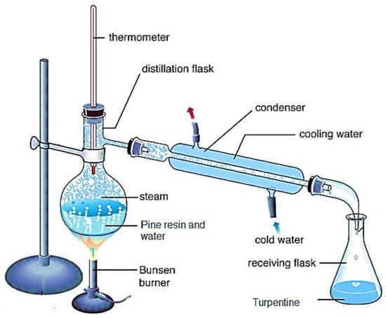 Schematic representation of the distillation process for the extraction of turpentine, adapted from [22].