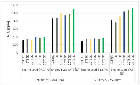 The authors of [20] reported that pollutant emissions such as HC, CO and smoke decreased by 65%, 30% and 70%, respectively, compared to diesel at a high engine load. However, at maximum load, pine oil had up to 25% higher NOx production than the reference fuel.