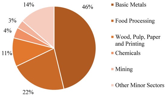 The breakdown in Figure 3 shows that the vast majority of industrial electricity in New Zealand is consumed by the basic metals, food processing, and wood, pulp, paper, and printing industries. Thus, implementation of DSM in these industries is likely to have more impact on overall electricity consumption than DSM in other industries in New Zealand. The high share of electricity consumption from basic metals reflects the large quantities of electricity required for the electrolytic reduction of alumina feedstock, iron smelting, and steel making [85].