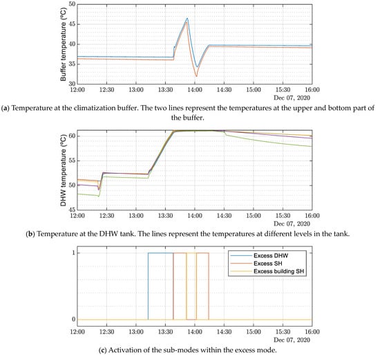 The implemented algorithm not only changes the set-points of the tanks, but also the indoor temperature: fixing higher set-points in winter and lower ones in summer. The effect of changing these values is subjective and their potential impact on the comfort sensation may be hard to study numerically. Although it may be said that everything that deviates from the so-called standard set-points is a non-desired effect, the opposite might also be argued. That is, the user chooses more relaxed standard set-points in order to completely fulfill their comfort criteria only when the excess mode is enabled.