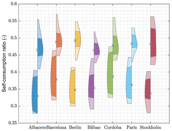 It is necessary to consider that the main objective of the implemented rule-based control is to increase the self-consumption of the system. Thus, the mean self-consumption ratio is improved in every climate. The improvements are all between 9.7% (Cordoba) and 15.3% (Berlin), as can be seen in