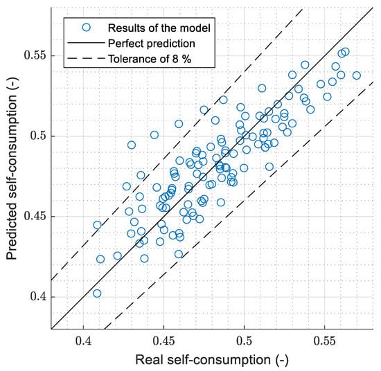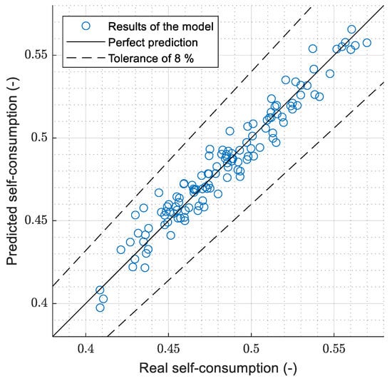 In addition, once all the simulations were carried out, a regression analysis was carried out with two objectives. Firstly, to quantify the effect of each of the analyzed parameters on the final outcome in terms of self-consumption; and secondly, to derive a relatively straightforward equation that could be used to obtain an approximation of the operation of the system and the controller in other scenarios.