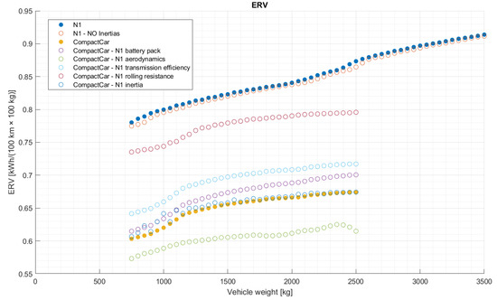 In particular, it has been found that for a correct calculation of the ERV index, it is important, first, to establish the correct definition of the rolling resistance coefficient, followed by the aerodynamics, and then the battery pack parameters and the transmission efficiency. On the other hand, the inertia contribution can be considered negligible.