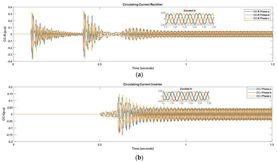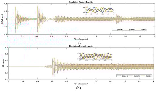 | [18] | Adaptive proportional integral (API) controller | More effective than PR controller in suppressing circulating current. No HVDC integration or fault scenario resilience tested. |