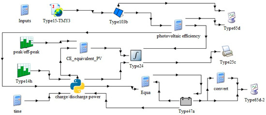 TRNSYS information flow diagram to simulate the PV/BESS coupled with Python software.