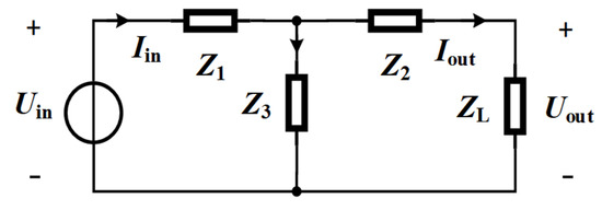 In the figure, Z1, Z2, and Z3 are the impedance on the three bridge arms of the T-circuit; ZL is the load impedance; Uin and Iin are the port voltage and input current of the input port; and Iout and Uout are the port voltage and output current of the load port.