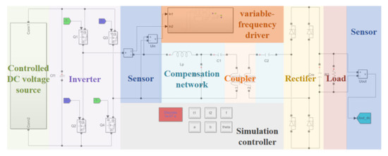 Combining the foregoing two methods of output voltage stabilization and soft-switching maintenance, a compound control method is achieved and a model is assembled in Simulink as in Figure 14 to preliminarily verify its effectiveness. The whole simulation is executed in two steps to verify the two methods, respectively, and during each simulation, the coupler inductance is set as that at the rated position (aligned in the X-axis, 6 cm away in the Z-axis) initially and switched to misaligned positions later. Without loss of generality, 9 cm away on the X-axis and 12 cm away on the Z-axis are taken as examples.