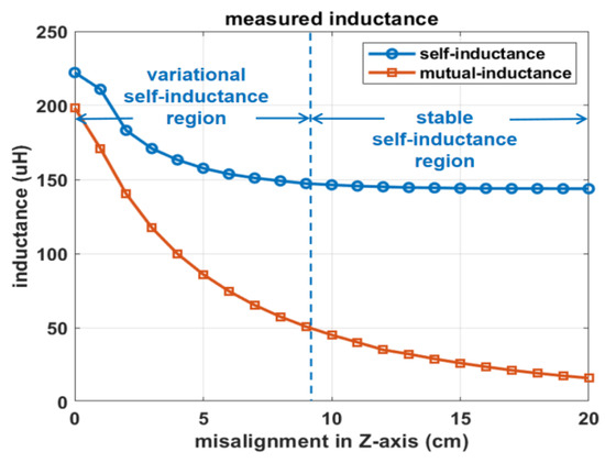 In the variational self-inductance region, the transmitter and receiver are closely coupled and both the self- and mutual inductance vary sharply. Specifically, the self-inductance dropped by 35.28% and mutual inductance by 74.4%. The strong link between self-inductance and the resonance of the IPT system means that a great variation of inductance could lead to serious detuning of the IPT system, failure of inverter soft-switching, reduction of transfer efficiency, and the enormous risk of system breakdown. Therefore, the influence of mutual- and self-inductance should be considered simultaneously in relatively moving coupler applications, especially in strongly coupled cases.