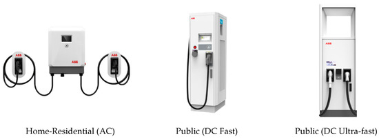 Different types of EV chargers (typical types of chargers from ABB).