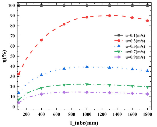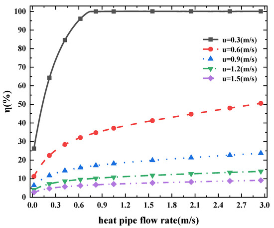 η at different temperature of the heat pipe under different flow rate (T_tube refers to the different heat pipe inlet temperature, u refers to the flow rate of ammonia).