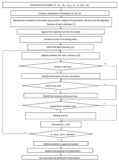 N symbolizes the number of variables and the size of the optimization problem. Since it contains four parameters of two PI controllers, the Raindrop vector N = 4 for the optimum control design and the vector in (1) is given as: