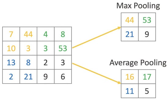The architecture of a CNN consists of convolutional layers, nonlinearity, pooling layers, and fully connected layers. The first layer of the CNN is the convolutional layer, which receives inputs such as time series data, images, video, or audio. The convolutional layer consists of constructive filters that perform convolutional operations as they slide over the data, generating feature maps. These maps provide a more detailed representation of the extracted features that are relevant to predicting the output. The filter size will determine the quality of the features that are extracted. Next, a pooling layer is applied to retain only the dominant features. The max-pooling layer, for example, takes the maximum value of each patch in the feature map, as shown in Figure 3.