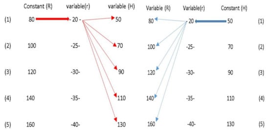 The methodology involved keeping one variable constant while systematically changing the other two variables. For example, the radius (R) remained constant while the values of r and H varied across the columns and rows, as illustrated in the accompanying chart in Figure 3.