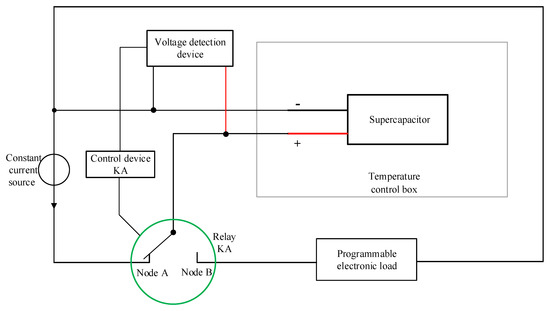 - Place the supercapacitor into the detection platform and read and record the initial terminal voltage through the voltage detection device.