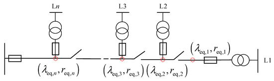For the components on the non-minimum path, the equivalent fault rate and the equivalent average outage duration are calculated for each branch using the upward network equivalence method to the switch at the first end of the branch.