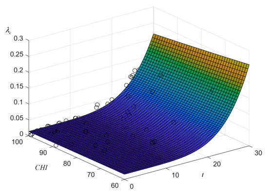 Figure 7 and it can be seen that the data samples are located on the fitted surface or evenly distributed on both sides of the surface. Analysis of the surface shows that at the same CHI, the failure rate is proportional to the operation time, and the transformer failure rate curve satisfies the trend that the rising slope increases with the deepening of aging; at the same aging level, the failure rate rises slowly with the decline of CHI, which is close to the actual operation.