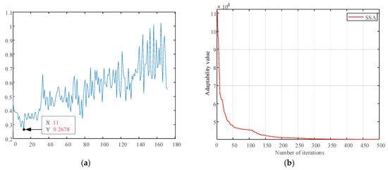 Figure 8, and the optimal number of typical scenario classifications is 11. Therefore, the reliability indexes are calculated by dividing the distributed power output, load, and failure rate into 11 typical scenarios, and the final system reliability index values are derived. Meanwhile, to illustrate the necessity of the sparrow search algorithm to optimize K-means, the minimum value of