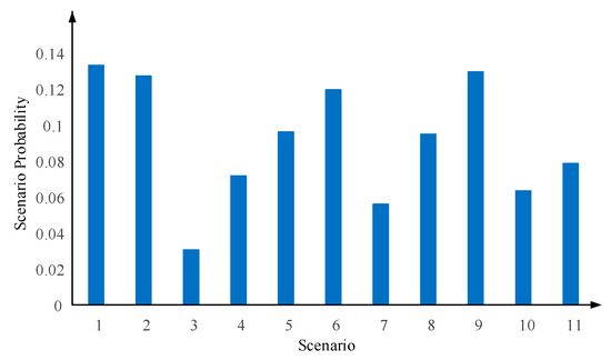 Figure 9 shows the probability of each typical scenario. There are no extreme cases where the probability of a particular scenario is extremely low or extremely high, indicating that the scenario extraction in this paper is reasonable.