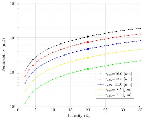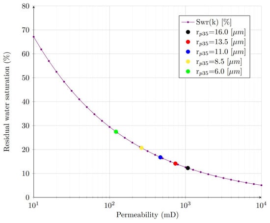 content in the gas withdrawn from storage. A single porosity value was assumed, and permeability was related to porosity by considering the pore throat aperture at 35% mercury saturation as per mercury injection capillary pressure (MICP) measurement according to [