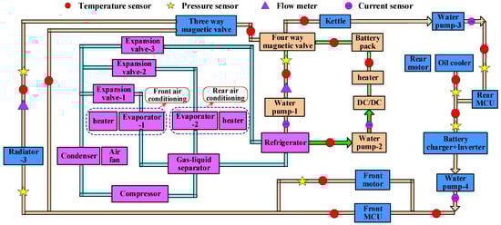 Schematic of the sensor layout scheme in vehicle thermal management system.