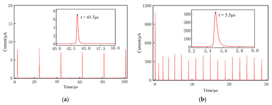 Corona current obtained by simulation. (a) Positive polarity; (b) Negative polarity.