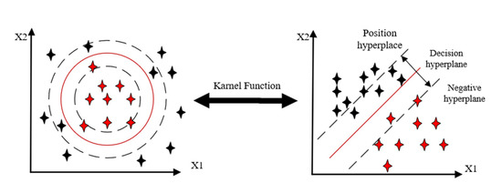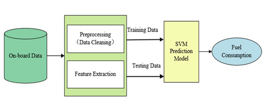 SVM is mainly used to solve binary classification tasks and relies on the kernel function to realize mapping from low-dimensional data to high-dimensional data. Its working principle is shown in Figure 5. Figure 6 shows the process of using support vector machines for fuel consumption prediction.