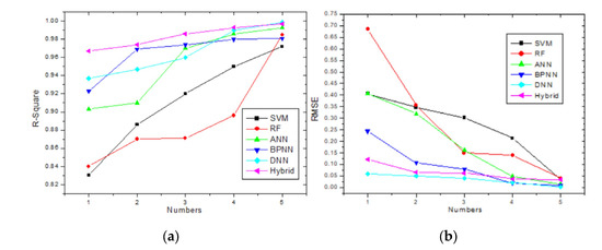 (a) Comparison of results based on R2; (b) comparison of results based on RMSE.