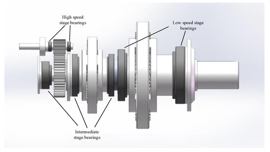 The bearings of the gearbox shown in Figure 1 can be divided into bearings of the low-speed stage, bearings of the intermediate stage, and bearings of the high-speed stage. Excepting the bearings of the high-speed stage, which are deep-groove ball bearings, all the other bearings are tapered roller bearings. The failure rate of the high-speed bearings is higher than that of the other bearings because their rotating speed is faster, and their working conditions are worse [28]. When the wind turbine runs with load for a long time, it may be affected by factors including sudden changes of wind direction and extreme weather. If it is accompanied by insufficient lubrication, it may cause the transmission bearing to wear and break. The fault condition of a gearbox bearing is shown in Figure 2.
