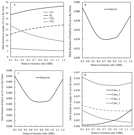 3.2. The Effect of Steam-to-Biomass Ratio on the Syngas Quality