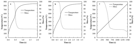 | TGA at a Heating Rate of 30 °C/min to 850 °C | Fluidized Bed at 850 °C | |