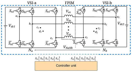 The electric circuit of a 5PIM supplied by a dual-voltage source inverter (VSI) (VSI-a and VSI-b) with a separate DC is depicted in Figure 1 and will be examined in this study.