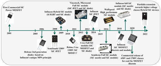 - At the converter level: by directly replacing the Si devices by SiC ones or simplifying the circuit topologies to improve the converter efficiency, fast switching capabilities, low power loss, and reducing the active and passive component numbers to reduce the converter size.