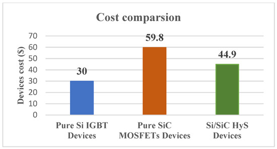 - Deshpande, A.; Luo, F. Practical Design Considerations for a Si IGBT + SiC MOSFET Hybrid Switch: Parasitic Interconnect Influences, Cost, and Current Ratio Optimization. IEEE Trans. Power Electron. 2018, 34, 724–737. [Google Scholar] [CrossRef]