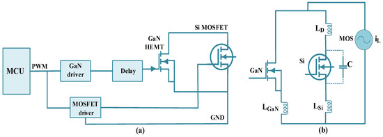 - Liu, G.; Bai, K.H.; McAmmond, M.; Brown, A.; Johnson, P.M.; Lu, J. Critical short-timescale transient processes of a GaN+Si hybrid switching module used in zero-voltage-switching applications. In Proceedings of the 2017 IEEE 5th Workshop on Wide Bandgap Power Devices and Applications (WiPDA), Albuquerque, NM, USA, 30 October–1 November 2017; pp. 93–97. [Google Scholar] [CrossRef]