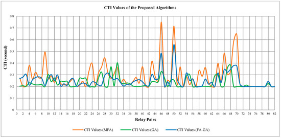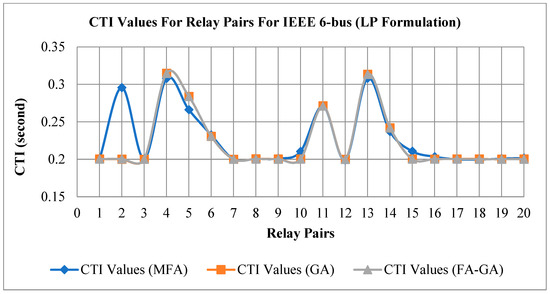 The CTI of each backup and primary relay pair is presented in Table 5. It is demonstrated that all backup and primary relay pairs satisfy the CTI criteria and that all of them are greater than 0.2.