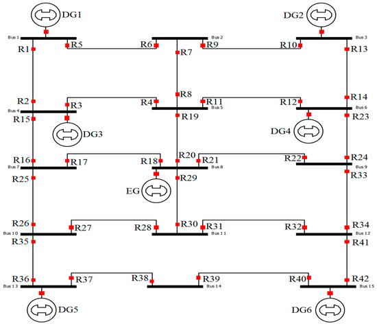 In this section, the achieved results for the DOCRs are presented using the proposed algorithms. To show the efficiency of the proposed modified firefly algorithm (MFA), the genetic algorithm (GA), and the hybrid firefly–genetic algorithm (FA-GA), a comparison with other optimization techniques is provided. The effectiveness of the proposed techniques is validated and tested through various IEEE bus systems. Specifically, the following four standard IEEE systems were considered: the IEEE 3-bus, 6-bus, 9-bus, and 15-bus test systems. The results were achieved through the development of a precise simulation program using MATLAB software version 2021a.