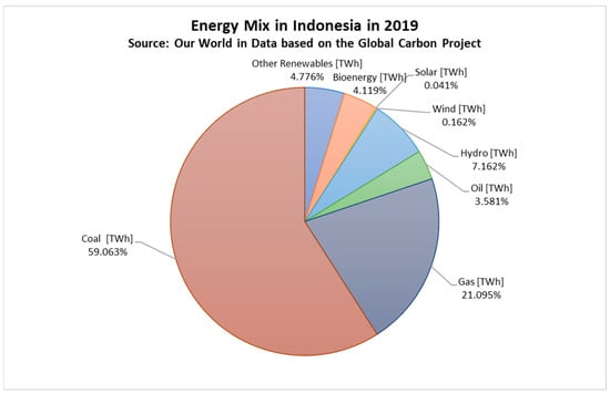 - Ember Yearly Electricity Data. Share of Electricity Production by Source. Our World in Data. Available online: https://ourworldindata.org/grapher/share-elec-by-source?country=~IDN (accessed on 11 May 2023).