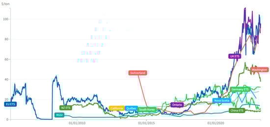 - ICAP. Allowance Price Explorer. International Carbon Action Partnership. Available online: https://icapcarbonaction.com/en/ets-prices (accessed on 19 May 2023).