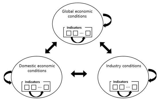 In previous studies, many researchers have analyzed the variables that affect industries. Many variables affect the industry, but they are largely divided into global economic conditions [100,101], domestic economic conditions [102,103], and industrial conditions [104,105].