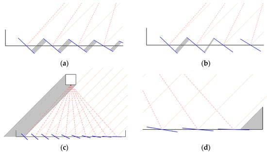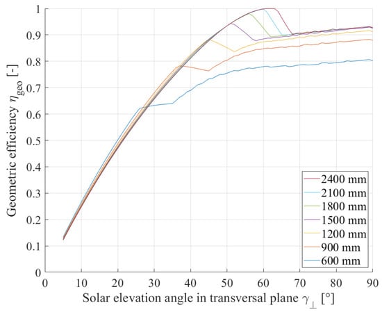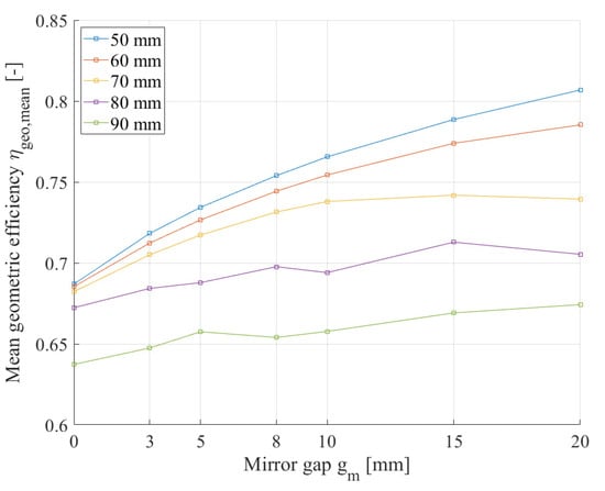 23], who calculated the optical efficiency using the ray-tracing software Soltrace. The cross section of this multi-mirror concentrator is similar to a parabolic trough, and therefore, the internal shading mechanisms are immaterial within this investigation.