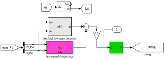 Representation of hybrid artificial ecosystem optimizer and incremental-conductance MPPT.