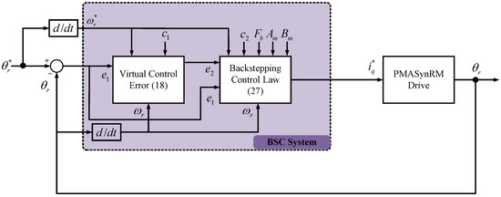 21], a PMSM drive system was targeted, and an adaptive backstepping (ABS) control approach was introduced as a solution. The purpose of this method is to achieve precise tracking responses by utilizing the robustness properties of the ABS control. In [